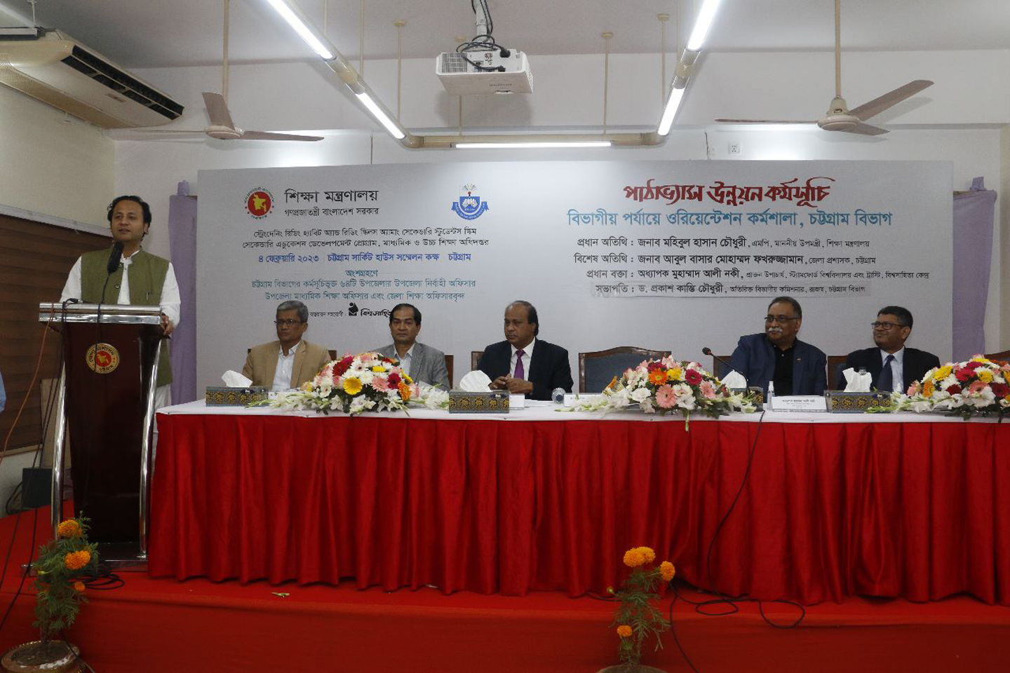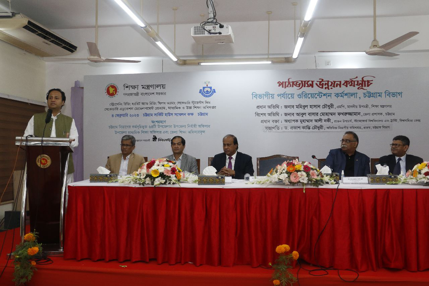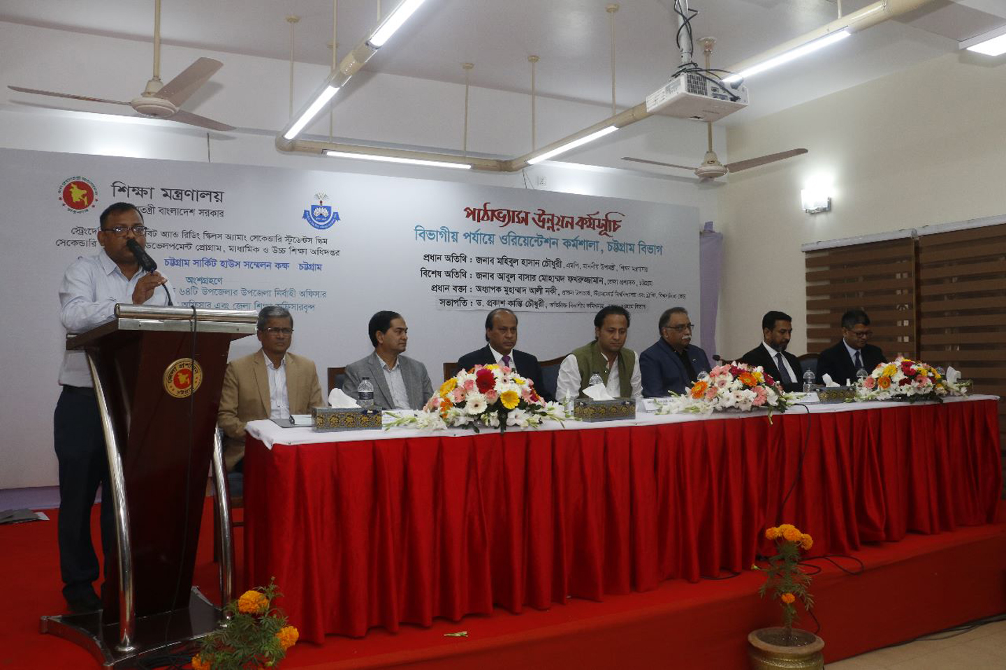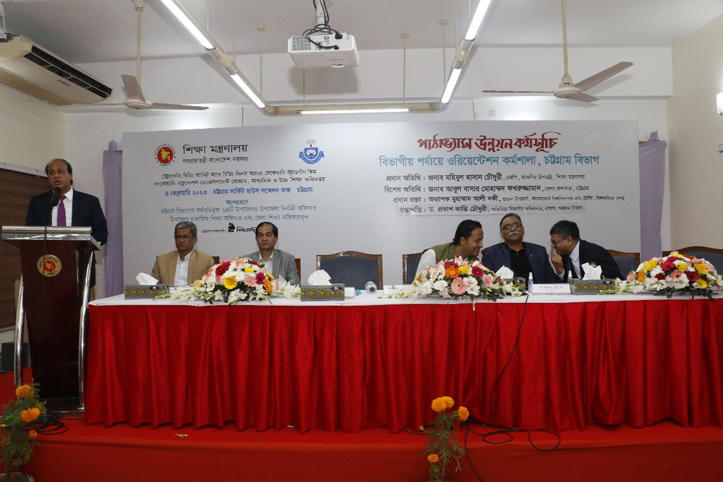 চট্টগ্রাম সার্কিট হাউজ সম্মেলন কক্ষে সকাল ১১:০০টায় শিক্ষা মন্ত্রণালয়ের মাধ্যমিক ও উচ্চ শিক্ষা বিভাগের মাধ্যমিক ও উচ্চ শিক্ষা অধিদপ্তর কর্তৃক বাস্তবায়নাধীন সেকেন্ডারি এডুকেশন ডেভেলপমেন্ট প্রোগ্রাম (এসইডিপি)-এর অন্তর্ভুক্ত স্ট্রেংদেনিং রিডিং হ্যাবিট অ্যান্ড রিডিং স্কিলস অ্যামাং সেকেন্ডারি স্টুডেন্টস স্কিমের আওতায় ‘পাঠাভ্যাস উন্নয়ন কর্মসূচি’র চট্টগ্রাম বিভাগের ওরিয়েন্টেশন কর্মশালা অনুষ্ঠিত হয়।