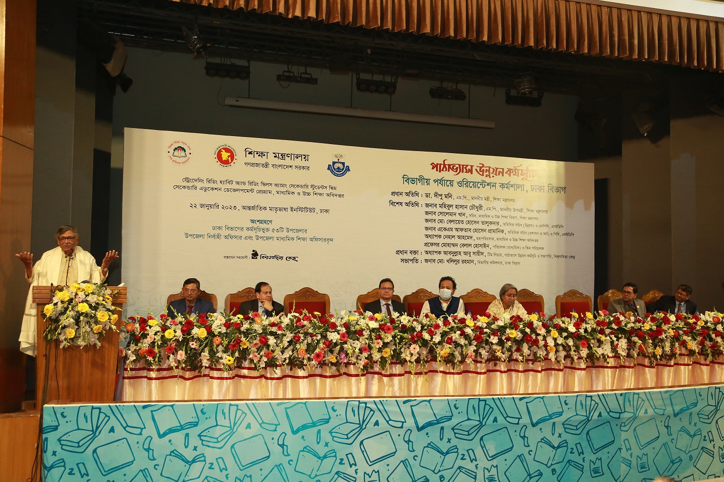 কর্মশালায় ঢাকা বিভাগের বিভাগীয় কমিশনার জনাব মো. খলিলুর রহমান-এর সভাপতিত্বে প্রধান অতিথি হিসেবে উপস্থিত ছিলেন গণপ্রজাতন্ত্রী বাংলাদেশ সরকারের মাননীয় শিক্ষামন্ত্রী ডা. দীপু মনি এম.পি.। প্রধান বক্তা হিসেবে উপস্থিত ছিলেন পাঠাভ্যাস উন্নয়ন কর্মসূচির টিম লিডার ও বিশ্বসাহিত্য কেন্দ্রের সভাপতি অধ্যাপক আবদুল্লাহ আবু সায়ীদ।